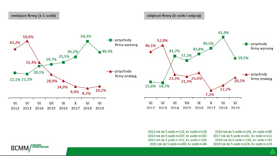 Sytuację swojej firmy gorzej oceniają przedstawiciele większych firm ogólnobudowlanych (zatrudniających 6 i więcej pracowników), wśród których aż 20% przewiduje w tym roku spadek swoich przychodów.