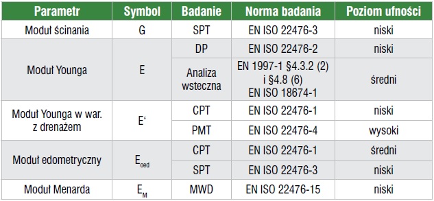 Tab. 1. Pośrednie określenie sztywności gruntu – przykład wskazówek interpretacyjnych [5, tab. 9.3]