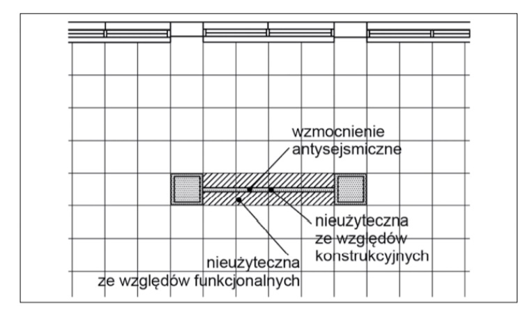 Rys. 12. Powierzchnia nieużyteczna spowodowana umieszczeniem wzmocnienia antysejsmicznego między słupami