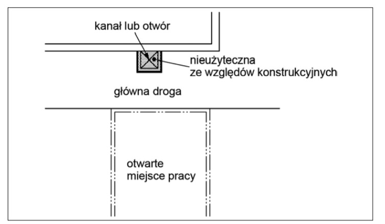 Rys. 8. Powierzchnia nieużyteczna ze względu na konieczność zapewnienia dostępu do otworu w podłodze