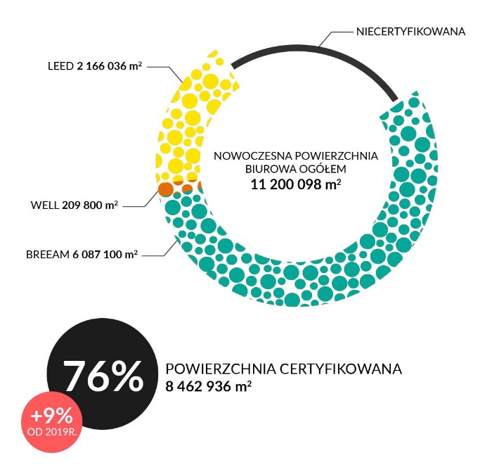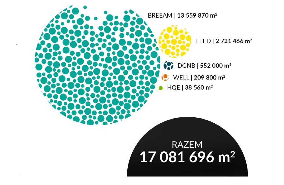 Najbardziej obrazowym parametrem, który pokazuje rozwój zrównoważonego budownictwa jest powierzchnia użytkowa certyfikowanych obiektów, która przekroczyła już 17 mln m2. W ciągu roku zanotowano przyrost o ponad 3 mln m2 certyfikowanej powierzchni; dla porównania w roku 2019 był to wzrost o 2 mln m2.