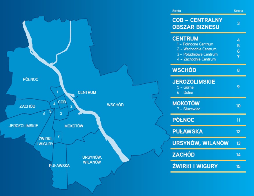 Strefy biurowe Warszawy. Źródło: Źródło: Raport Colliers International pt. „Przewodnik po strefach biurowych”