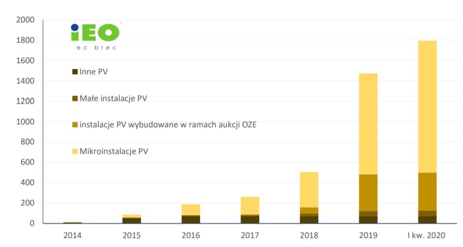 Rynek fotowoltaiki (PV) rozwija się najszybciej ze wszystkich sektorów OZE w Polsce. Łączna moc zainstalowana w źródłach fotowoltaicznych na koniec 2019 roku wynosiła prawie 1500 MW, a w maju 2020 r. przekroczyła 1950 MW. Największy przyrost nowych mocy obserwowany jest w segmencie mikroinstalacji, oznacza to dużą aktywność prosumentów indywidualnych i biznesowych. Instytut Energetyki Odnawialnej wraz z partnerami przygotował raport na ten temat.