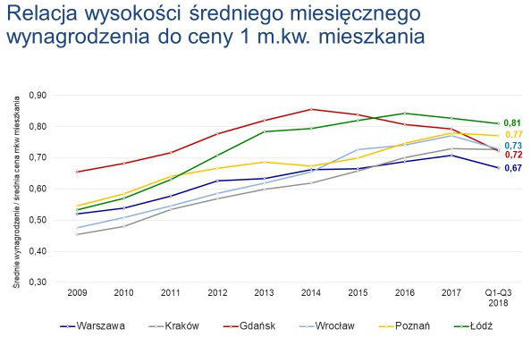 Uśredniony dla 6 rynków roczny wzrost cen wyniósł 11%, a w poszczególnych miastach były one nawet większe. W Warszawie średnia cena 1 m² mieszkania pozostającego w ofercie na koniec grudnia 2018 r. była aż o 13,3% wyższa niż przed rokiem. Dwucyfrowe wzrosty zanotowano także w Krakowie (+12,6%), Wrocławiu (+11,9%) i Trójmieście (+11%).
