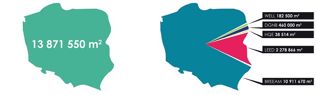 Jest to przyrost o ponad 2 mln m2 względem 2018 roku. W ciągu roku przybyło aż 146 certyfikowanych obiektów. Tym samym liczba certyfikowanych budynków osiągnęła 648.