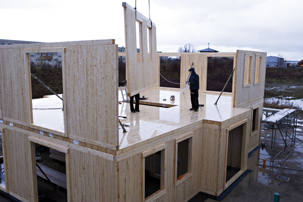 Fot. 4 Budowa domu z elementów z drewna klejonego