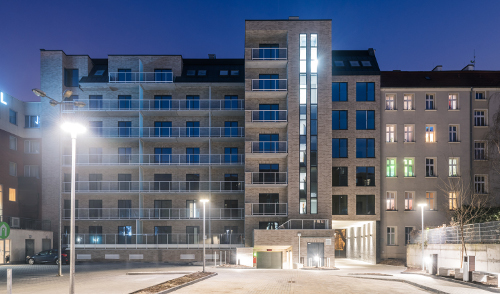 Fasadę apartamentowca zdobi spiek kwarcowy, z kolei od strony dziedzińca dominuje płytka klinkierowa. – Frontowa ściana to reprezentacyjna wizytówka Zyndrama, natomiast jasna płytka elewacji od strony dziedzińca nawiązuje do przedwojennej architektury Wrocławia – wyjaśnia Miłosz Greszta, przedstawiciel spółki 6B47, dewelopera inwestycji. Generalnym wykonawcą była firma PORR.