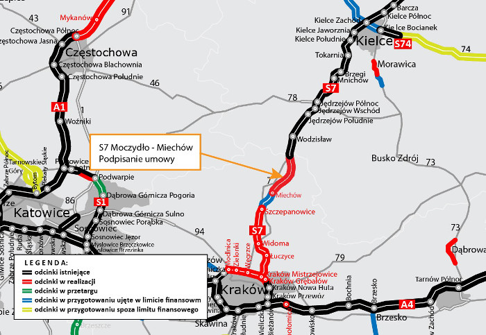 Wykonawcą odcinka S7 Moczydło-Miechów została firma INTERCOR. Dla inwestycji została już wydana zgoda na realizację przez Wojewodę Małopolskiego.