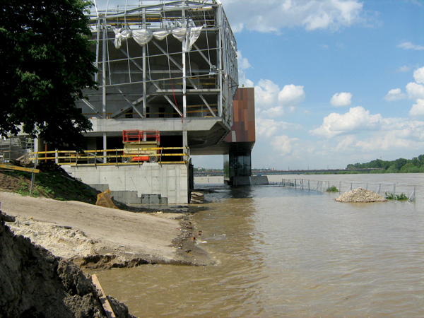 Kiedy w zeszłym roku fala powodziowa przeszła dwukrotnie przez Warszawę, osiągając poziom najwyższy od 160 lat, konstrukcja budynku była praktycznie skończona. Po opadnięciu wody okazało się, że budynek przeszedł test z wynikiem bardzo dobrym.