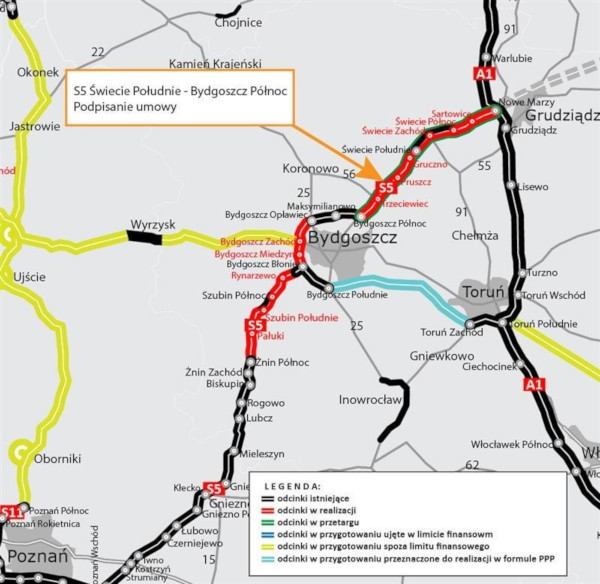 - Świecie Południe (Dworzysko)-Bydgoszcz Północ (Aleksandrowo) – podpisana umowa;