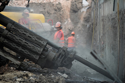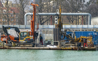 Ściany szczelinowe (pełen obwód, tj. 509 m.b. do głębokości 27-28 m) zostały zrealizowane w osiem tygodni przy użyciu dwóch maszyn głębiących oraz jednej serwisowej.