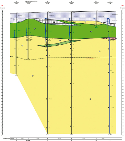 Warunki geologiczno-hydrologiczne wymogły zastosowanie odpowiedniej technologii wykonania wykopu ze względu na brak możliwości typowego wypompowania wody z wykopu bądź zagłębienia spodu ścian szczelinowych w warstwie słabo przepuszczalnej. Obliczenia i opis zagadnienia Ze względu na złożoność zagadnienia obliczenia opisanego zamierzenia budowlanego wykonywano etapowo przy użyciu różnorodnego oprogramowania komputerowego, wspomagając się wynikami próbnych testów.
