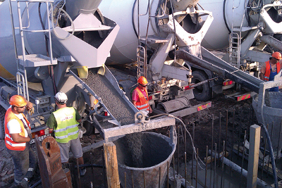 W przypadku miejsc znajdujących się poza zasięgiem pomp ustawionych na lądzie betonowanie odbywało się z pompy ustawionej na platformie pływającej. Wówczas jedna z pomp, ustawiona na lądzie, podawała beton z betonowozów do pompy ustawionej na platformie pływającej, która transportowała mieszankę do miejsca wbudowania.