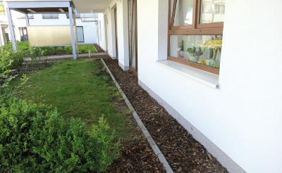 Bardzo istotnym elementem aranżacji dachów zielonych są żwirowe opaski zabezpieczające takie elementy budynku, jak ściany, attyki, kominy, świetliki. Opaska żwirowa przede wszystkim ma zapewnić szybki spływ wody deszczowej z nawierzchni dachu do warstwy drenażu (pod ścianą działa jak rynna zbierająca wodę z całej jej powierzchni), umożliwia również kontrolny dostęp do obróbek dekarskich hydroizolacji i może pełnić funkcję przeciwpożarową. Prawidłowa opaska zabezpieczająca powinna być wykonana ze żwiru płukanego frakcji 16/32 mm, natomiast bezmyślnym lekceważeniem jej technicznej funkcji na dachu zielonym jest coraz częściej spotykane „dekoracyjne” wykończenie opasek korą ogrodową (fot. 11). Kora jest materiałem naturalnym w ogrodnictwie, jednak zastosowana na dachu może doprowadzić do jego destrukcji, ponieważ utrudnia odpływ wody, a w czasie intensywnych opadów deszczu spływa do wpustów, skutecznie zapychając instalację odwadniającą.