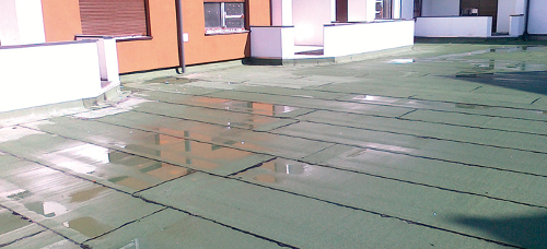 Fot. 3 Dla tego typu hydroizolacji jednowarstwowej dopuszczalne pochylenie połaci dachu wynosi 3,0% (dach użytkowy w naprawie)