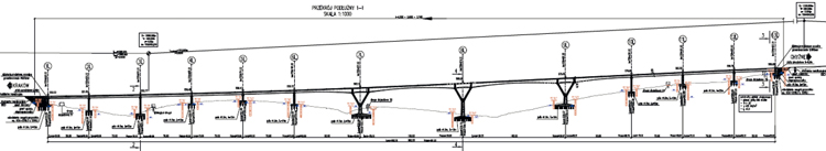 Odcinki estakady o stałym przekroju zostały wykonane w technologii deskowania portalowego składającego się z kratownic stalowych o wysokości 2,6 m i podparciu wysokonośnym.