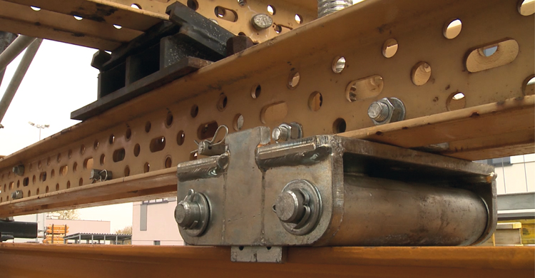 System jezdny deskowania opiera się na głowicy rolkowej V2 MK składającej się z trzpienia i rolki przejezdnej łożyskowanej. W trakcie betonowania deskowanie ustawione jest na trzpieniach o nośności 60 kN, natomiast w czasie przejazdu wspornik mostu (skrzydełko) opiera się na rolkach, które służą do przetoczenia segmentu na następną sekcję (fot. 1).