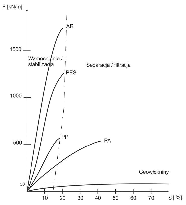 Rys. 3. Wytrzymałość geosyntetyków a ich funkcjonalność