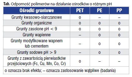 grunty i wody gruntowe mogą być uznane za nieszkodliwe wobec geosyntetyków.