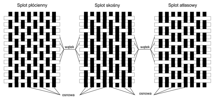 Rys. 2. Typy splotów geotkanin