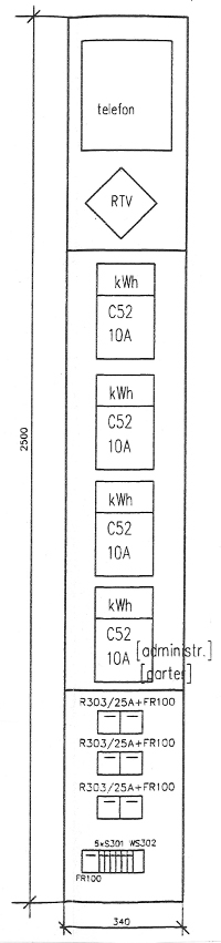 – montowanie w jednym przedziale wszystkich aparatów składających się na rozdzielnicę: wyłącznika głównego, zabezpieczenia przeciwprzepięciowego, wyłącznika administracyjnego oraz tablic z licznikami;
