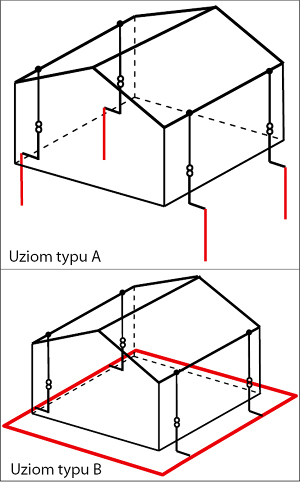– układ typu B: w postaci uziomu otokowego, kratowego lub fundamentowego.