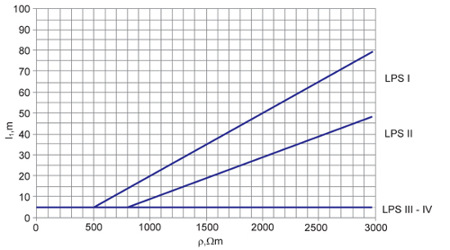Rys. 2 Minimalna długość l1 każdego uziomu zgodnie z klasą LPS [1]