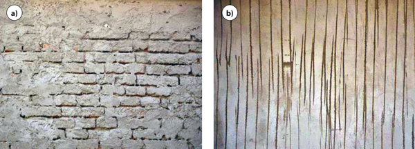 Fot. 6 Ściana pokryta: a) obrzutką renowacyjną, b) tynkiem renowacyjnym podkładowym