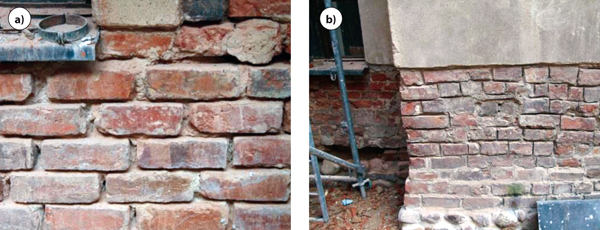 Przed nałożeniem tynków renowacyjnych mury uszkodzone przez wilgoć i sole muszą być odpowiednio przygotowane.Polega to na całkowitym usunięciu starych wypraw tynkarskich, usunięciu spomiędzy cegieł kruchej i piaskującej zaprawy na głębokość od 1 do 2 cm, wymianie starych i zwietrzałych cegieł na nowe (fot. 7). Przed nałożeniem tynków powierzchnia ściany musi być dokładnie odkurzona.