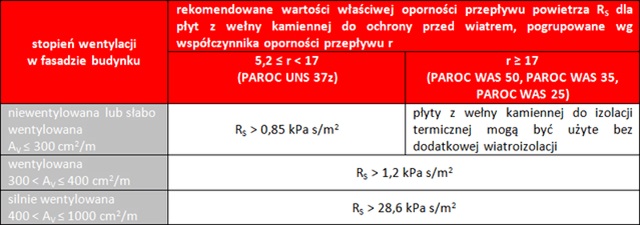 Tabela 2. przedstawia wartości minimalne oporu powietrza zalecane przez Paroc. O ile w kontekście ochrony wiatrowej krajowe przepisy budowlane nie mówią inaczej, warto przestrzegać poniższych wytycznych.