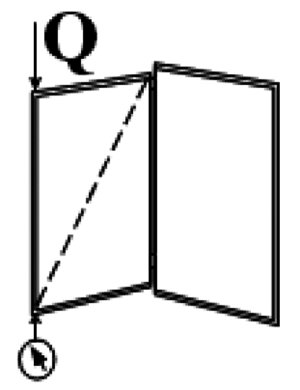 Wytrzymałość na obciążenie pionowe powinna być sprawdzana według [10]. Podczas przyłożenia siły jak na rys. 4 odkształcenie trwałe nie powinno przekroczyć 1 mm. W drzwiach niespełniających parametrów odporności na obciążenie pionowe lub eksploatowanych w warunkach z obciążeniami przekraczającymi obciążenia wynikające z dopuszczalnej kategorii użytkowania dość często dochodzi do uszkodzenia zawiasów (fot. 1).