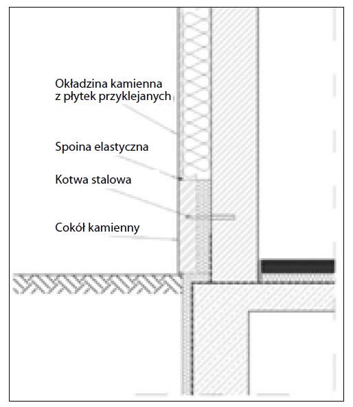 Rys. 5. Elewacja niewentylowana, kamienna z cokołem kamiennym (opracowanie własne na podstawie [1])