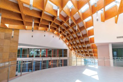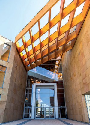 Fot. 4, 5 Konstrukcja drewna klejonego zadaszenia budynku dydaktycznego dla uniwersyteckiego Centrum Innowacji i Nanotechnologii w Rzeszowie (źródło: www.andrewex.pl)