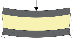 Tak zbudowany trójwarstwowy wyrób może być samonośnym elementem konstrukcyjnym zgodnie z normą PN-EN 14509 [5] przenoszącym zarówno ciężar własny, jak i oddziaływania środowiska naturalnego w postaci parcia i ssania wiatru czy też obciążenia śniegiem, pod warunkiem że powierzchnie styku materiałów izolacyjnych z okładzinami połączone są ze sobą w sposób trwały (rys. 2).