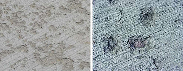 Fot. 2 Przykłady występowania pęcherzy na powierzchni posadzki przemysłowej