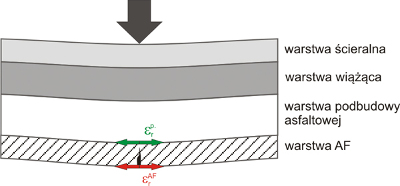Osiągnięcie wysokich wytrzymałości zmęczeniowych mieszanek mineralno-asfaltowych stosowanych np. w podbudowie asfaltowej nawierzchni zależy od prawidłowego skomponowania mma oraz odpowiedniego doboru lepiszcza asfaltowego. Według oryginalnej koncepcji amerykańskiej sposobem na poprawę właściwości zmęczeniowych całej konstrukcji jest zastosowanie dodatkowej warstwy asfaltowej przeciwzmęczeniowej (zwyczajowo oznaczanej jako AF – anti-fatigue) pod podbudową asfaltową (rys. 3). Warstwa taka jest znacznie odporniejsza zmęczeniowo niż typowy beton asfaltowy stosowany w podbudowie, co wynika nie tylko z rodzaju mieszanki (drobnoziarnista), ale także dużej zawartości elastycznego lepiszcza, zwykle modyfikowanego elastomerami.
