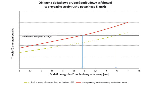Rys. 4 Obliczona dodatkowa grubość warstwy podbudowy asfaltowej w strefie ruchu powolnego [4]