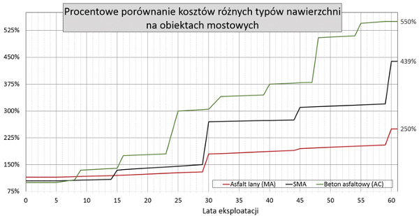 Rys. 5 Procentowe porównanie kosztów różnych typów nawierzchni na obiektach mostowych