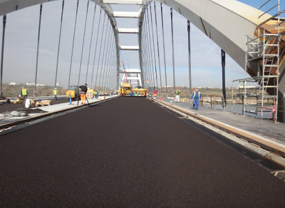 Fot. 3 Układanie asfaltu lanego na moście przez Wisłę w Toruniu (archiwum Pont-Projekt)