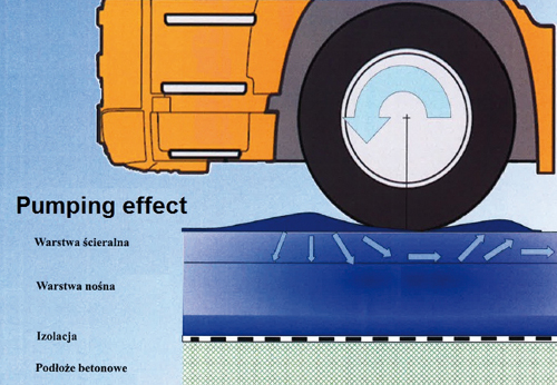 Istotna jest szczelność nawierzchni, gdyż spękania nawierzchni to penetrująca woda i degradacja w okresie zimowym. Przenikanie wody w głąb nawierzchni na moście pomiędzy warstwy lub do poziomu izolacji bez możliwości jej skutecznego odprowadzenia powoduje destrukcję nawierzchni oraz elementów wyposażenia obiektu. Dodatkowo w przypadku porowatej warstwy ścieralnej następuje pompowanie wody pod znacznym ciśnieniem od koła pojazdu, powodując dalej mikropęknięcia. Jednak najważniejszą różnicą między nawierzchnią na moście i drodze jest wymóg trwałego połączenia nawierzchni z płytą pomostu, czyli w ujęciu mechanicznym zespolenie płyty pomostu, izolacji i nawierzchni. W przypadku braku zapewnienia takiego zespolenia w myśl zasady kowadła odspojona strefa nawierzchni zostanie szybko zniszczona pajęczyną rys, powodując nieszczelność i dalszą destrukcję. Jak pokazują liczne zagraniczne analizy [9, 10], określenie właściwej wartości nośności połączenia międzywarstwowego płyty, izolacji i nawierzchni jest kluczowym zagadnieniem obliczeń trwałości nawierzchni na obiektach mostowych.