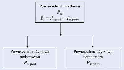 – powierzchnia użytkowa pomocnicza (Pu,pom) – część powierzchni użytkowej przeznaczona do zaspokajania pomocniczych potrzeb wynikających z funkcji budynku i niewchodzących w zakres potrzeb podstawowych, np.: w budynku mieszkalnym