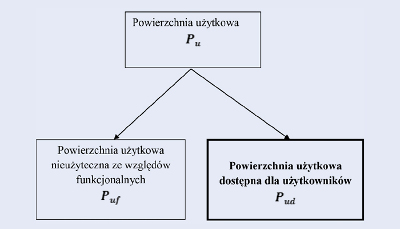 Należy zwrócić uwagę, że tak zdefiniowana powierzchnia nieużyteczna ze względów funkcjonalnych nie zmniejsza formalnie powierzchni użytkowej, lecz jest jedynie traktowana jako jej część składowa, powodująca wydzielenie tzw. powierzchni użytkowej dostępnej dla użytkowników (rys. 3).