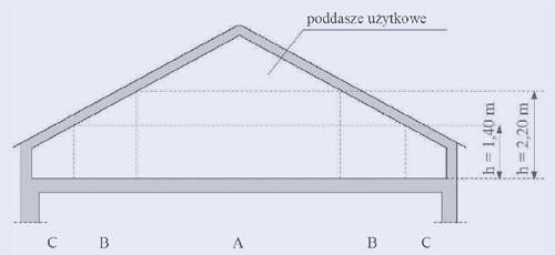 Rys. 5 Zasady redukcji powierzchni pomieszczeń o zróżnicowanej wysokości