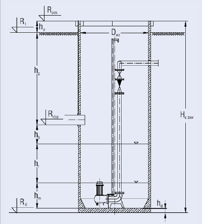 Rys. 1 Typowe rozwiązanie pompowni ścieków z pompami zatapialnymi