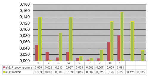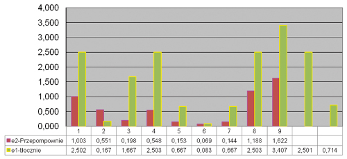 Porównując analizowane pompownie, można stwierdzić, że koszty, jakie należy ponieść na przepompowanie metra sześciennego ścieków na wysokość mH 2O w przepompowni, 7,5-krotnie przekraczają koszty przepompowania tej samej objętości ścieków w przypadku zastosowania tłoczni.