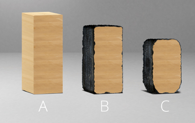 Drewno doskonale izoluje wysoką temperaturę pożaru od pozostałych pomieszczeń i bez problemu można tworzyć z niego przegrody ogniowe, jak stropy i ściany o odporności REI30 oraz REI60.