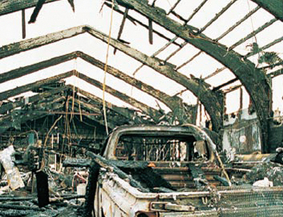 Fot. 4 Dźwigary z drewna klejonego utrzymujące swój profil jeszcze po pożarze