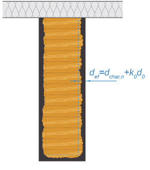 Rys. 1 Efektywna głębokość zwęglania przekroju drewnianego