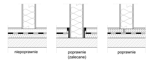 Rys. 6 Sposoby posadowienia lekkich ścian działowych na podłodze pływającej