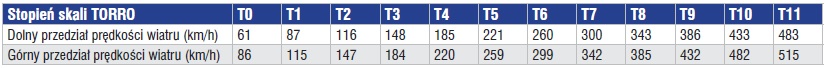 Skale tornad są dwie. Pierwsza to TORRO właśnie, a druga to skala Fujity. Skala TORRO odnosi się do prędkości wiatru w wirze. Zauważmy, że prędkości wiatru w wirze w sierpniu 2008 r. przekraczały znacznie prędkości startowe największego samolotu pasażerskiego świata. Uniosłyby go. No to cóż za problem podnieść „dach” albo zrujnować dom?
